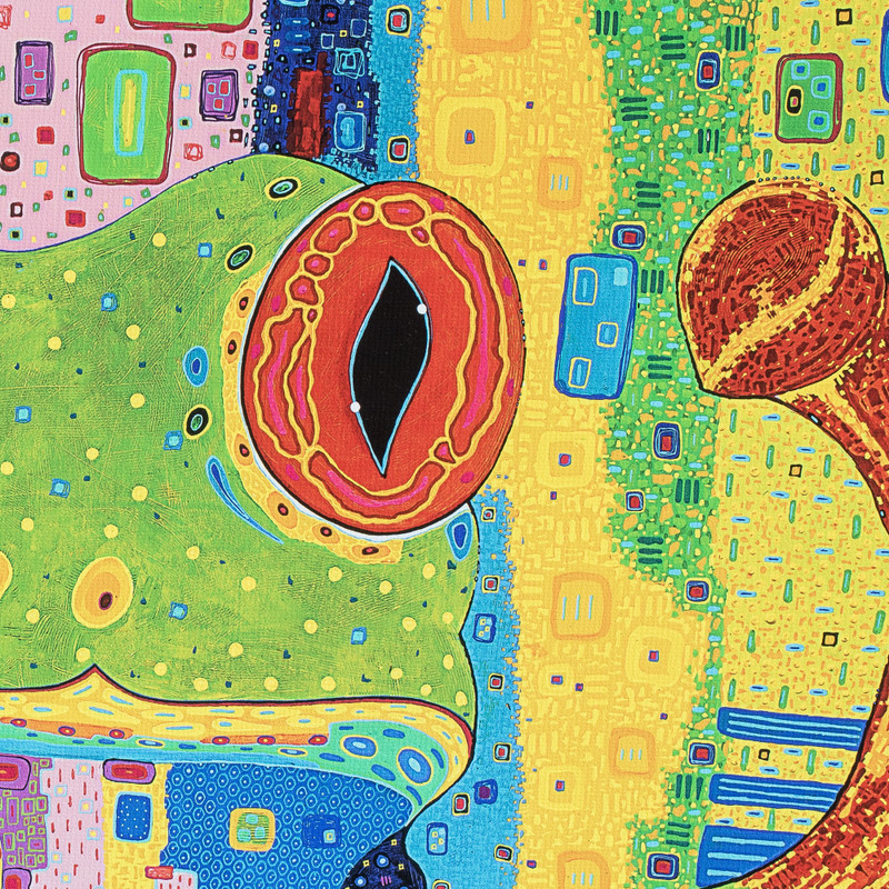 Delivery EstimateCosta Rica's famous red-eyed tree frogs inspire Ferlander Arguedas for a multicolored scene crafted in a modern style. His original composition is created with different painting techniques and materials; then he reproduces it on a stretched canvas with the sublimation printing technique for a splendid decorative wall art that will captivate nature lovers.