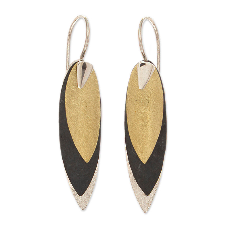 Backed by our 100% Happiness GuaranteeThe turning leaves of fall inspire the modern design of these earrings by Guillermo Arregui. Crafted with precision, two of the leaves are made from sterling silver, showcasing contrasting finishes — one with a soft matte texture, and the other with a rich, oxidized black. The final leaf is sculpted from brass, adding a warm, unique touch to this pair of earrings.