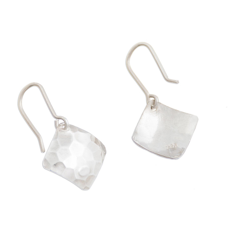 You can find our sterling silver dangle earrings 'Hammered Squares' by Marina Guzman in jewelry categories such as Modern Earrings, No Stone Earrings, Silver Earrings, Sterling Silver Earrings and Dangle Earrings. Enjoy exploring these sections for other Novica treasures.