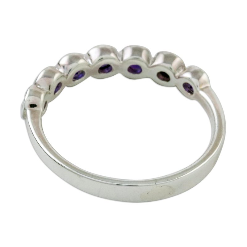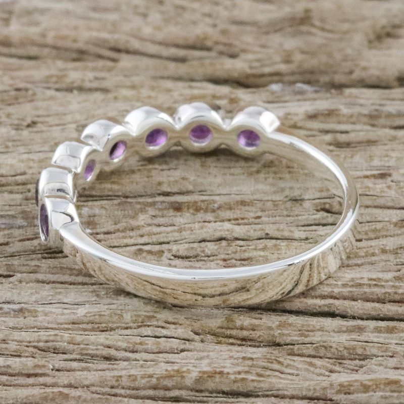 Backed by our 100% Happiness GuaranteeSeven faceted amethysts align like memories to crown a scintillating ring by Narinee. Working in sterling silver, the Thai artisan reinterprets a classic design. The style is popular as an anniversary gift but is beautiful anytime.