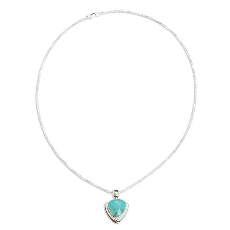 Backed by our 100% Happiness GuaranteeShaped like a pyramid, turquoise holds the promise of friendship and protection. Alon Diller selects the mystical gem for the design of this sterling silver necklace, setting the pear-shaped gem on a handcrafted silver pendant.