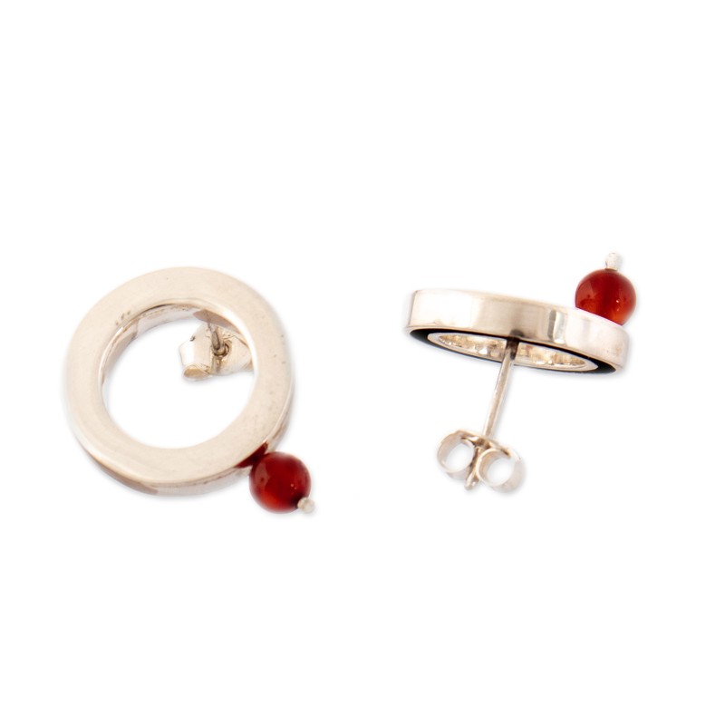 Endless loops of sterling silver create a minimalist design perfect for a chic ensemble. Peruvian designer Leslie Granthon works with a talented local team to create these button earrings, enriched by the bright beauty of natural carnelian beads set at each piece's bottom as a symbol of good luck.