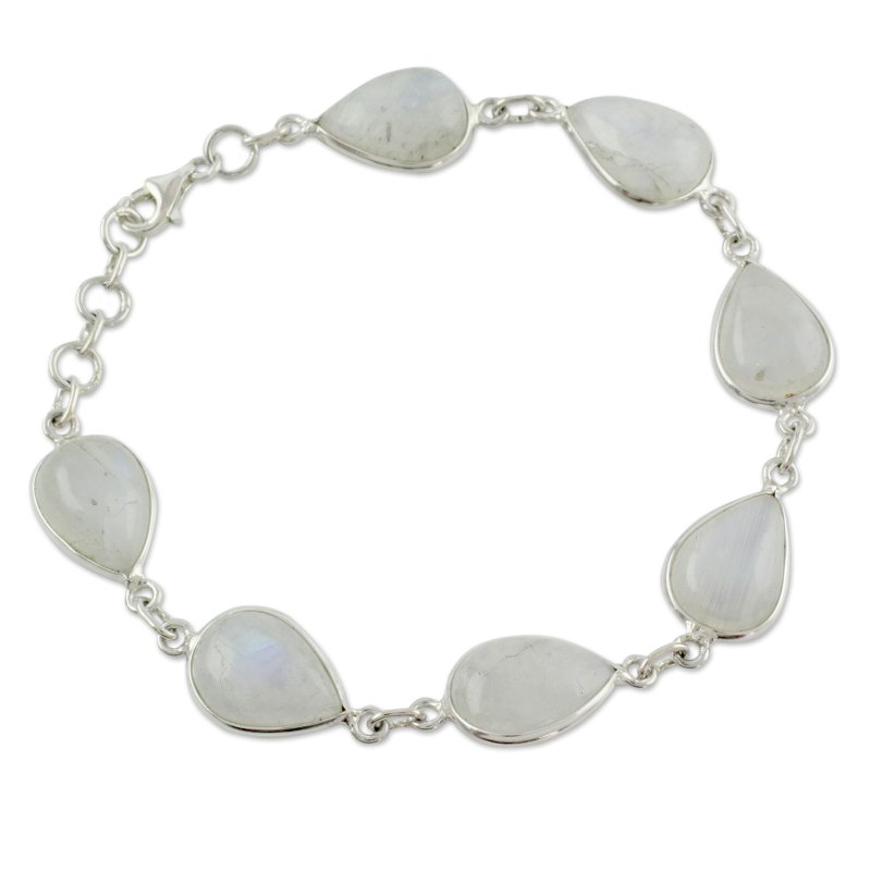 Gem of inspiration and intuition, moonstone elicits admiration in a bracelet by Alok Jain. He sets rainbow moonstone droplets in sterling silver as he crafts the bracelet by hand.