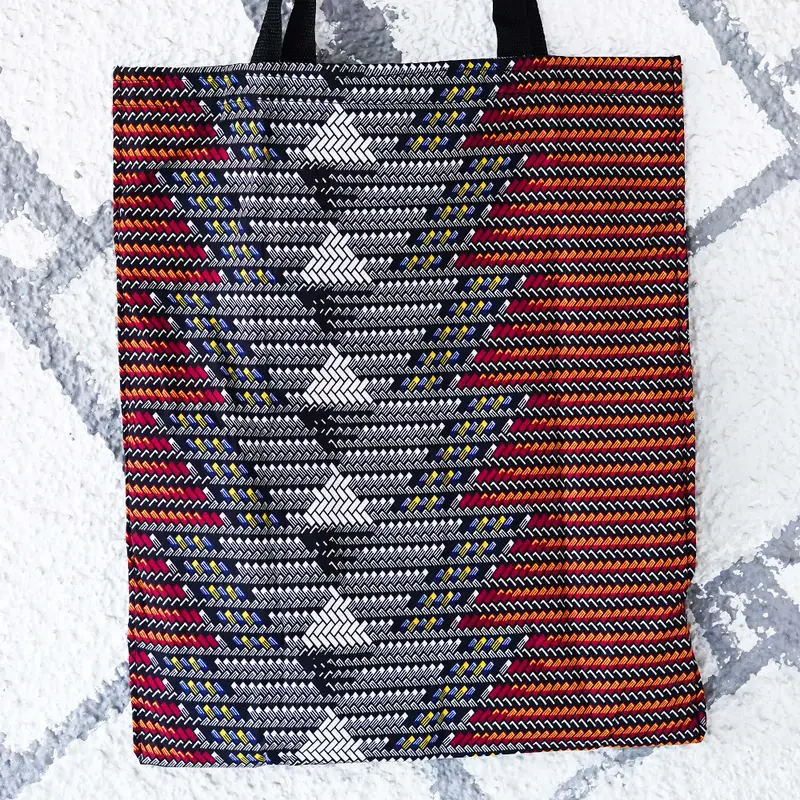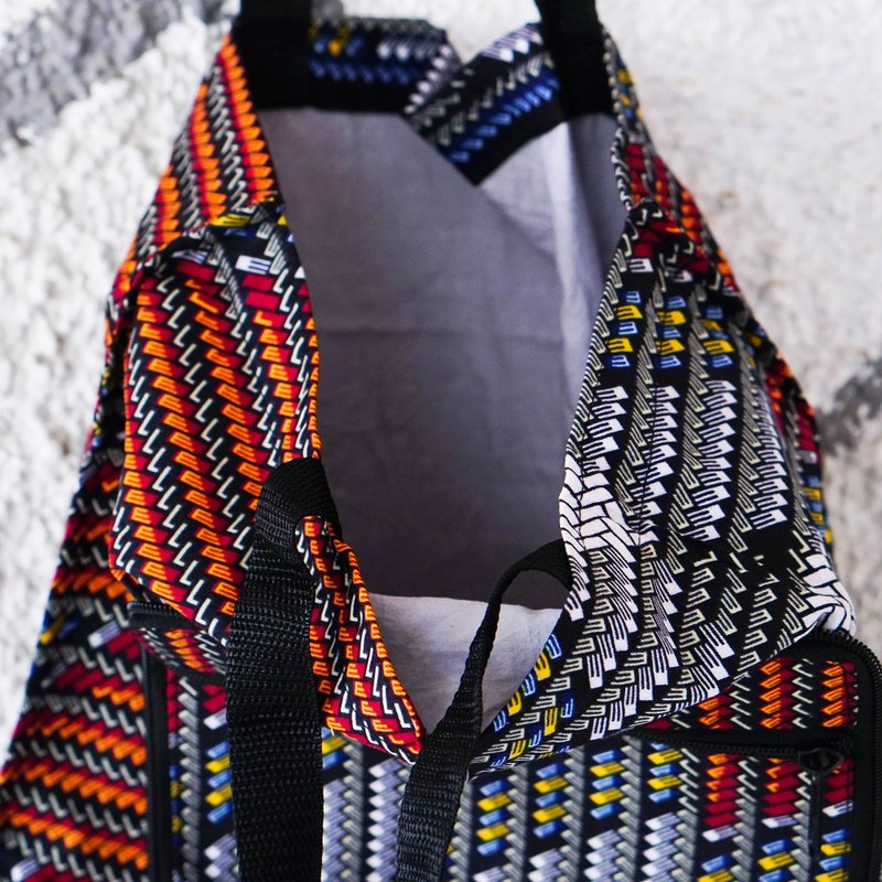 Infuse your days with the energetic spirit of this self-storing tote bag. Ghanaian artisan Anna Yawson crafts the bag from cotton, equipping it with a zipper closure and handy front pocket. Displaying a generous space when unfolded, the accessory has comfortable straps.
