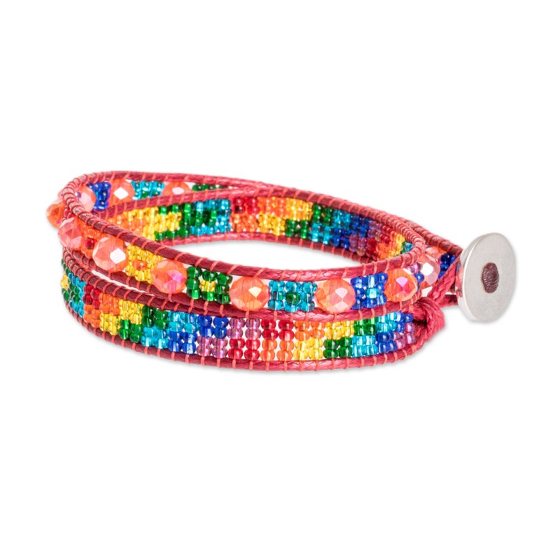 Backed by our 100% Happiness GuaranteeInfuse your look with vitality through this dynamic positive energy wrap bracelet, meticulously handcrafted in Guatemala. A vivid color palette comes to life, brought together by Domingo Reanda's expert weaving of shimmering crystal and glass beads on a specialized loom. The bracelet's vivacious charm is sealed with a polished Tibetan-style pewter button, making it a vibrant addition to your ensemble.