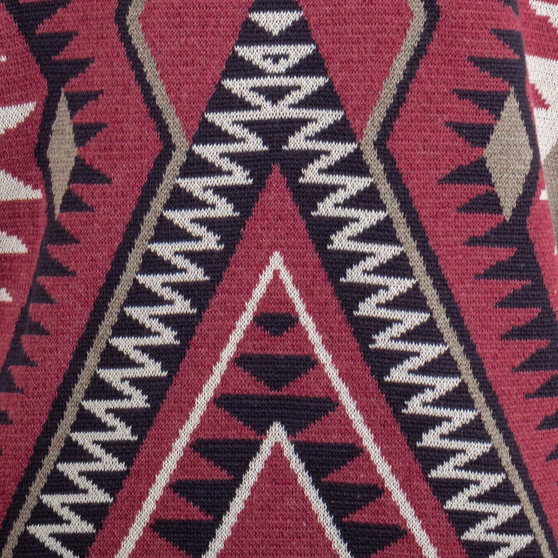 Cristina Villalobos designs fashion while going to school and taking care of her young child. Her work is inspired by styles from previous decades as well as the culture of her native Peru. Both appear in this multicolored geometric-patterned crew-neck sweater made from an eco-friendly recycled polyester and cotton blend.
