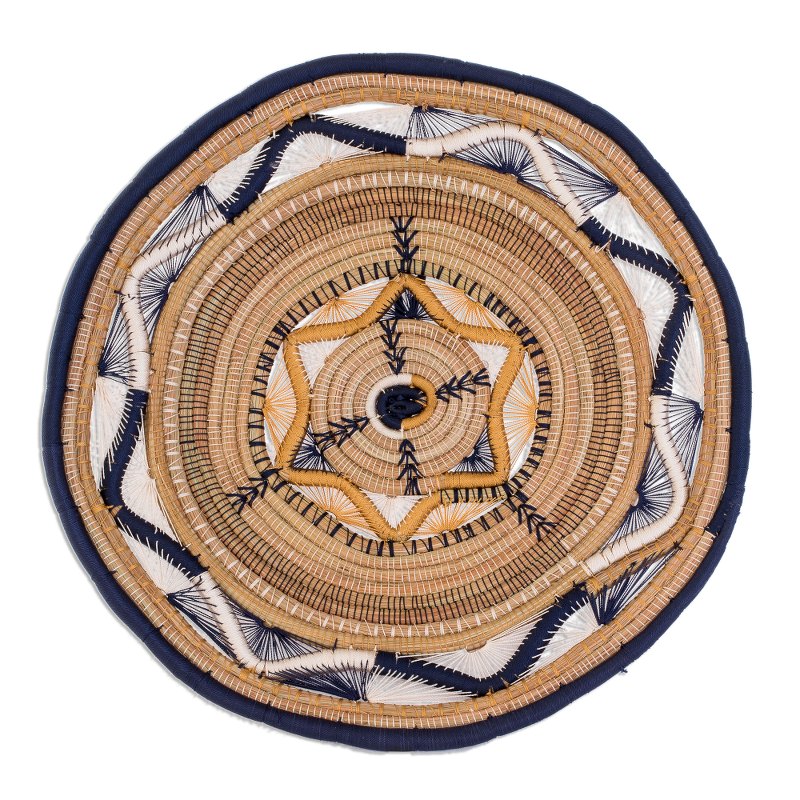 Backed by our 100% Happiness GuaranteeFor an enchanting addition to your home, this decorative basket is created by Tamara Pereira in Nicaragua. She works with natural pine needles, weaving them together by hand with navy and antique white thread to create intricate starry details. A loop on the back makes this basket perfect for hanging on a wall.