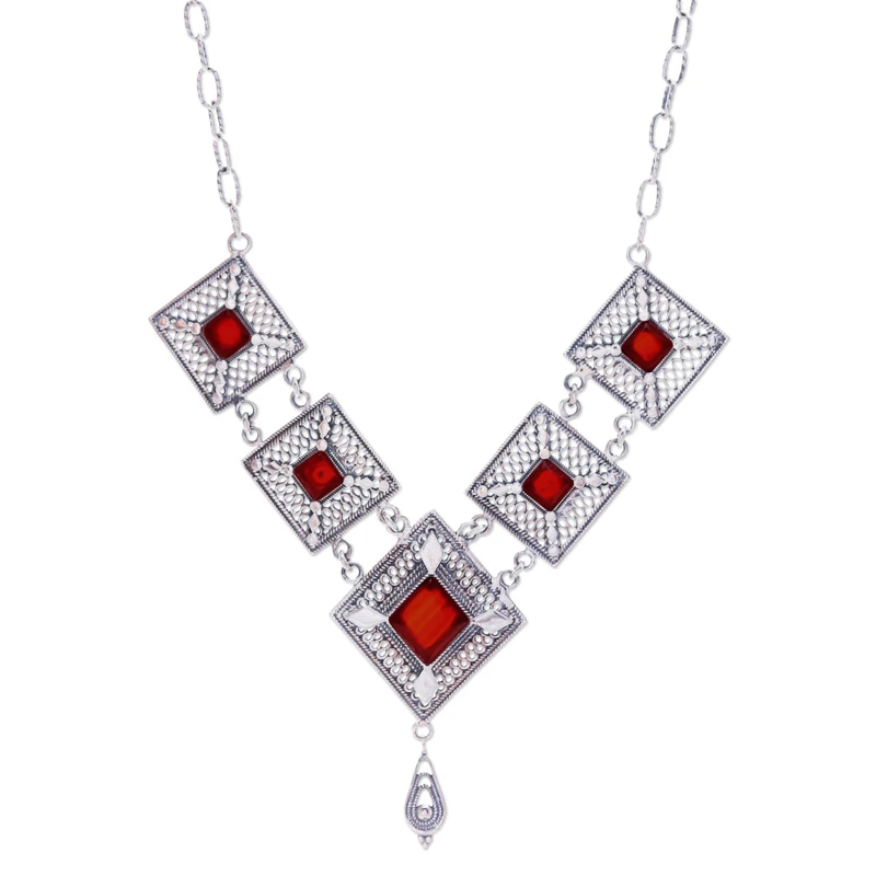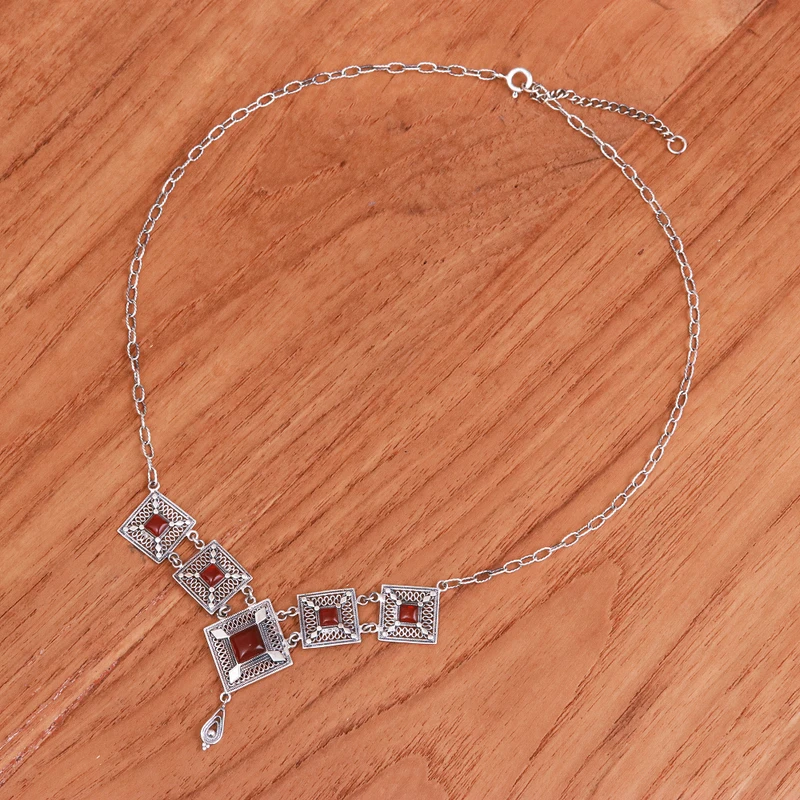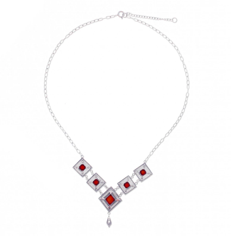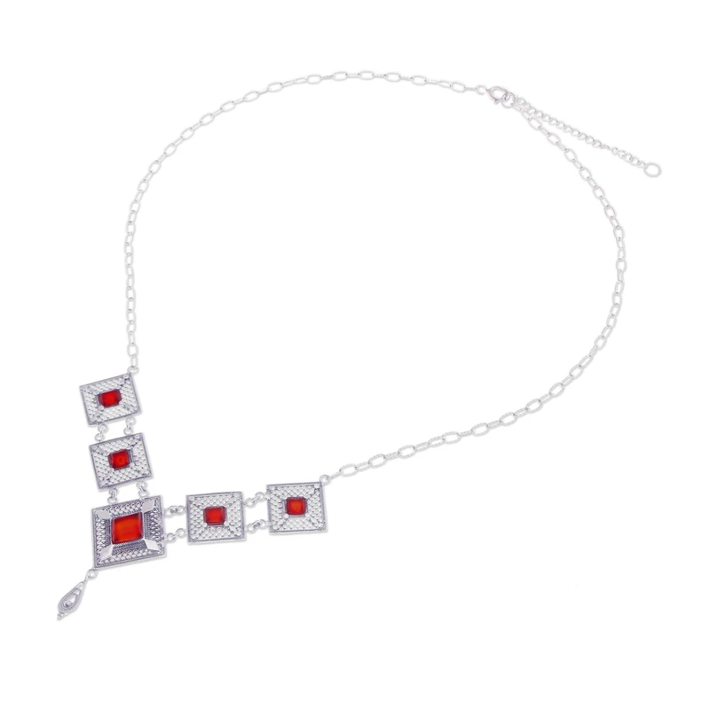 You can find our carnelian link pendant necklace 'Fiery Prima Donna' by Michael Krainer in jewelry categories such as Geometric Necklaces, Traditional Necklaces, Gemstone Necklaces, Birthstone Necklaces and Carnelian Necklaces. Enjoy exploring these sections for other Novica treasures.