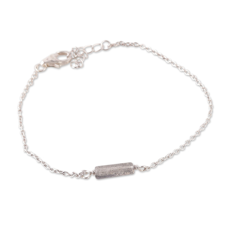 A mysterious gemstone decorates Neetu Barathi's sterling silver bracelet, calling for transformative energies. Inspired by minimalist trends, the Indian designer creates this pendant bracelet, adorned with a natural labradorite jewel at the center.
