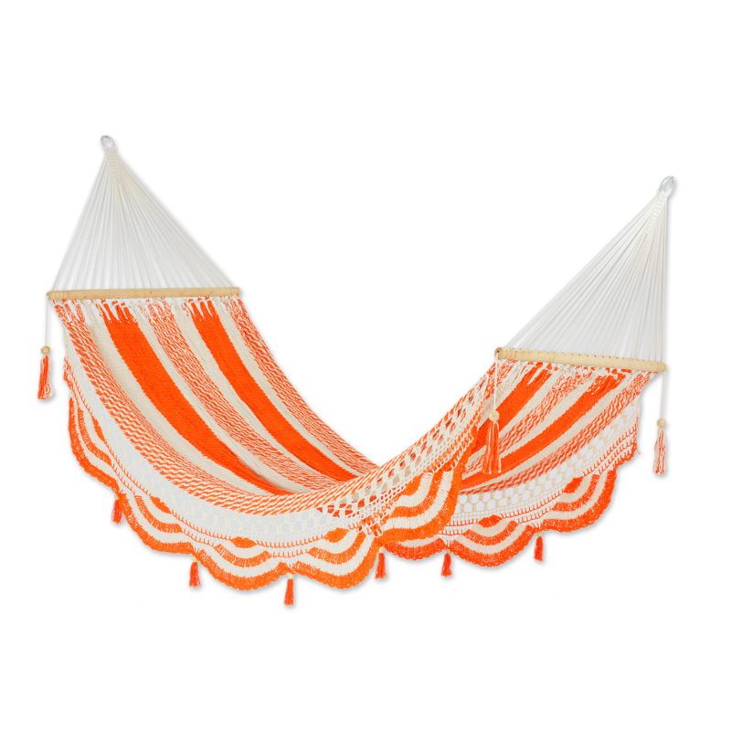 You can find our cotton hammock 'Sweet Orange' (single) by Mirna Hernandez in categories such as Tropical Decor Hammock, Cotton Hammock and Mayan Hammock. Enjoy exploring these sections for other Novica treasures.