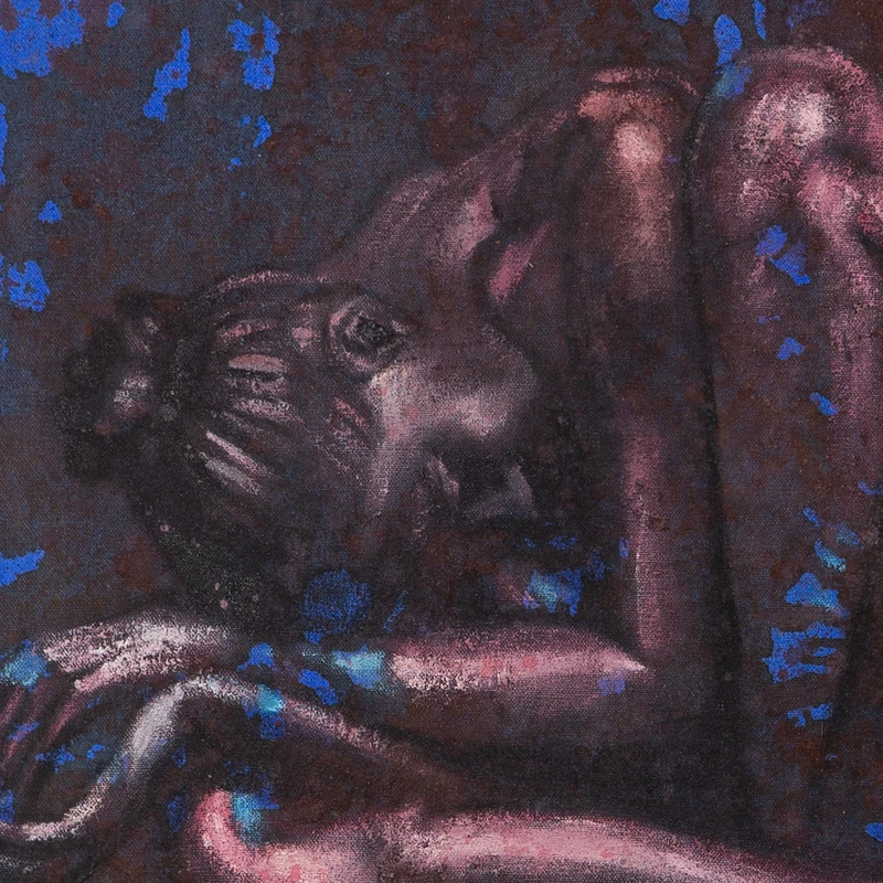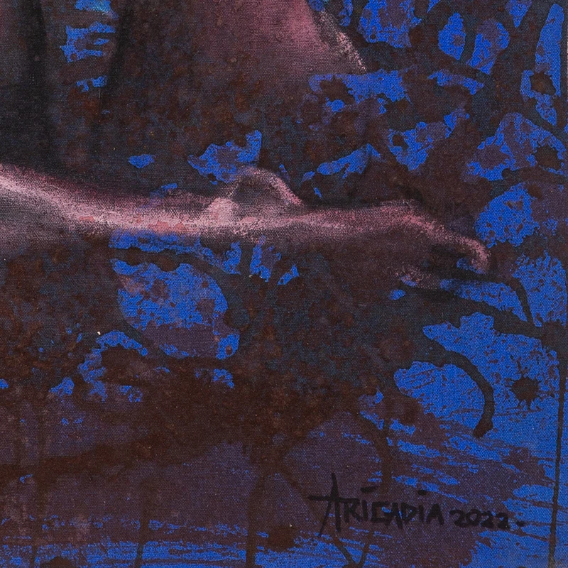 This evocative original painting is from Balinese artist Aricadia. He works in oils and acrylics on canvas to portray a nude woman in despair.