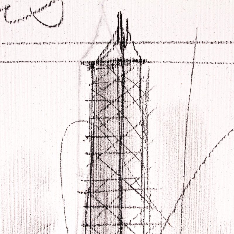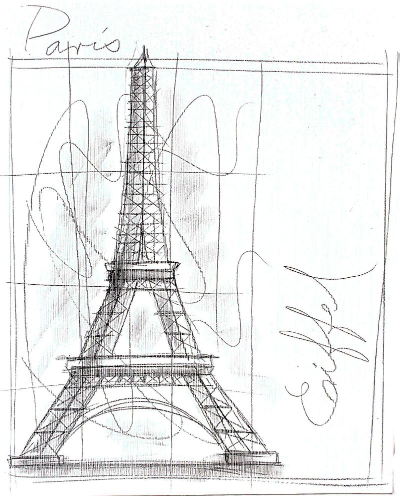 Mexican artist Humberto Sosa pays tribute to the great monuments of the world in this original series. Working in acrylic paints and pencil on wood board, the artist renders a sketch of the iconic Eiffel Tower in Paris. It was constructed in 1887 as the entrance to the World's Fair.