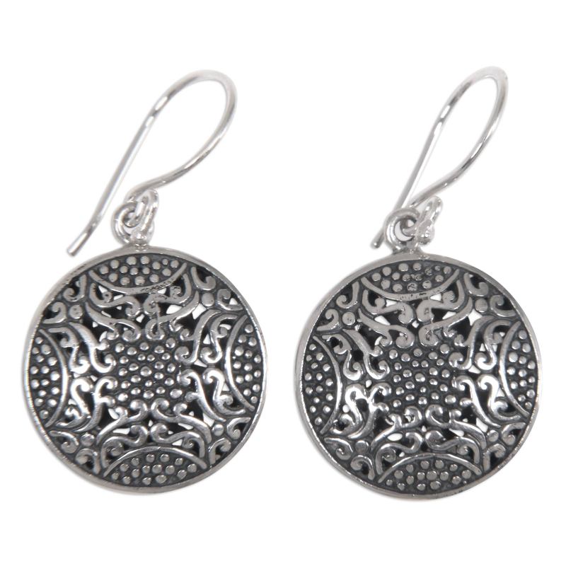 You can find our sterling silver dangle earrings 'Abundant Beauty' by Komang Suastra in jewelry categories such as No Stone Earrings, Silver Earrings, Sterling Silver Earrings and Dangle Earrings. Enjoy exploring these sections for other Novica treasures.