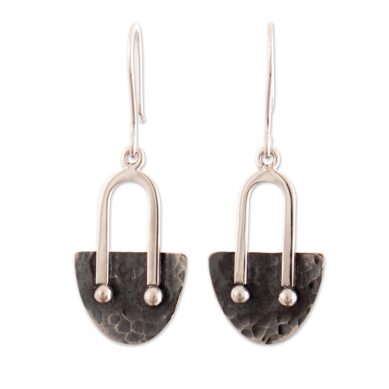 Inspired by the ancient cultures that once reigned over the prosperous Peruvian lands, artisan Jorge Perez creates this elegant pair from sterling silver. Combining traditional and modern silversmithing techniques, the artisan designs these oxidized and polished dangle earrings in the shape of ancient ceremonial knives.