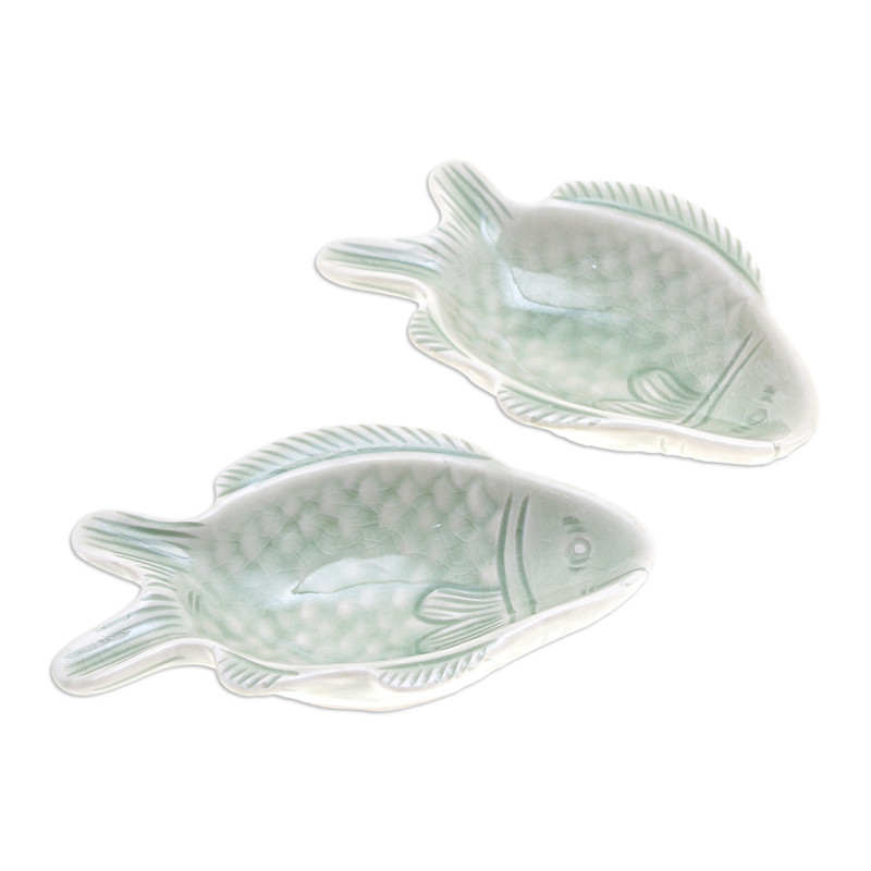 You can find our celadon ceramic snack plates 'Catch of the Day' (pair) by Kanda in tableware categories such as Animal Themed Serveware, Celadon Serveware, Ceramic Serveware, Platters Serveware and Serving Plates Serveware. Enjoy exploring these sections for other Novica treasures.