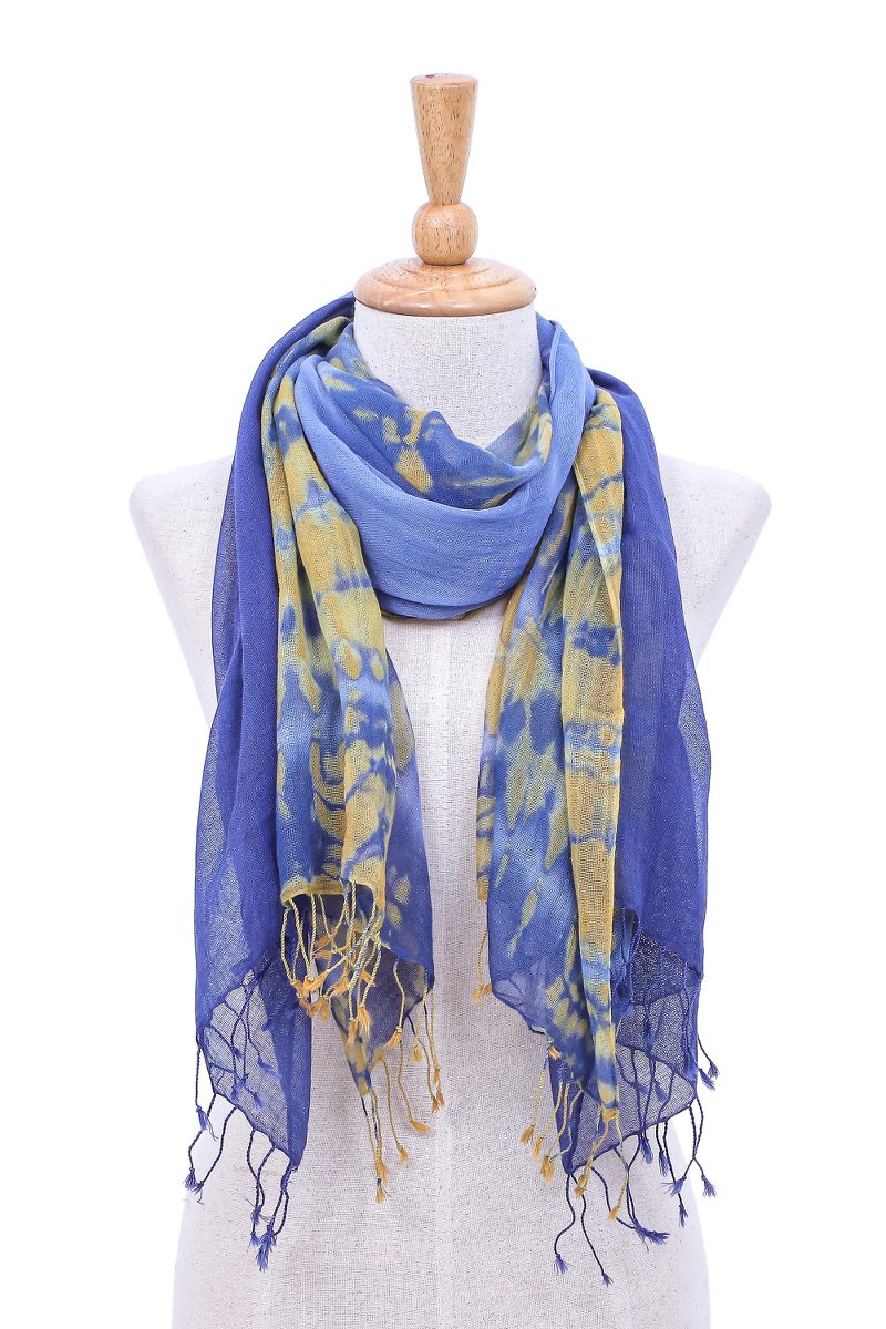 Backed by our 100% Happiness GuaranteeHand woven from 100% cotton, Vinita present this pair of wrap scarves in coordinating colors and complementary patterns. The first is tie-dyed in shades of periwinkle, indigo, and honey, while the second features a midnight blue on one end and forget-me-not blue on the other. Worn separately or together, the pair is sure to be a wardrobe staple.