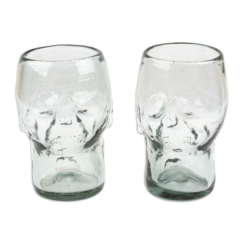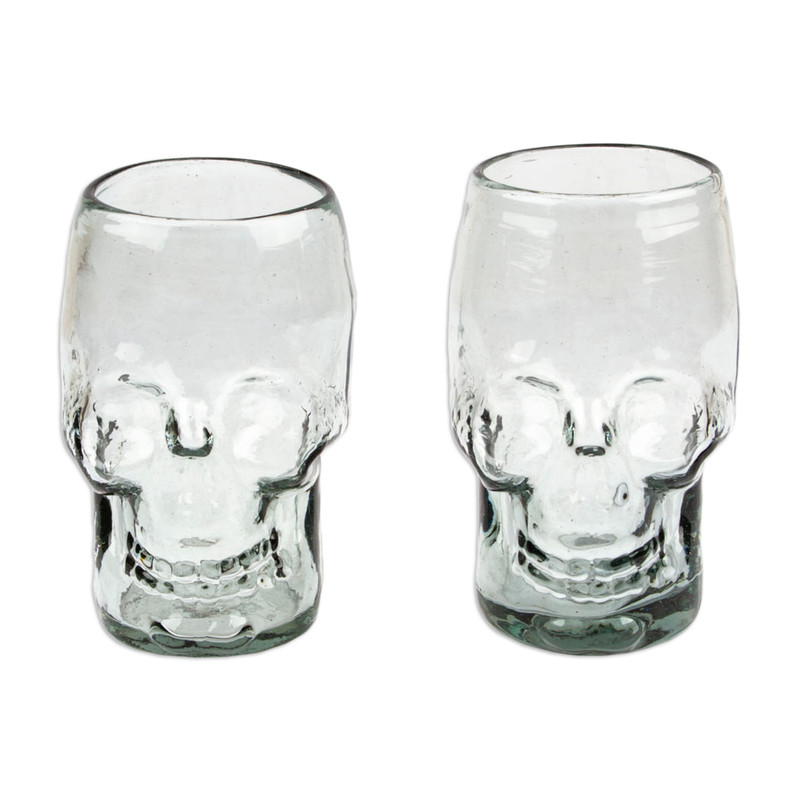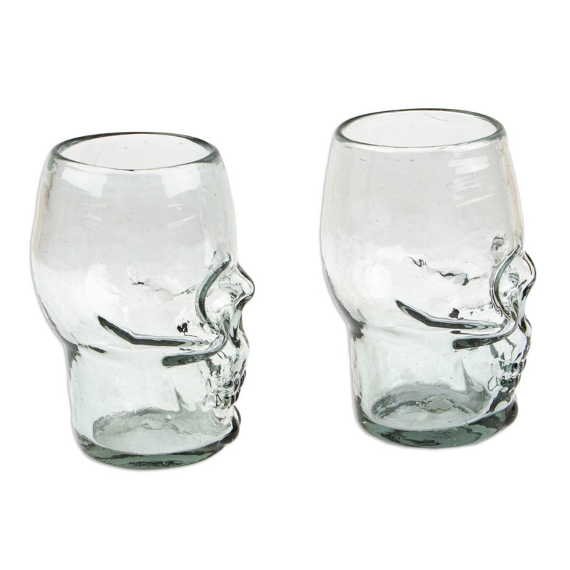 Backed by our 100% Happiness GuaranteeDon't settle for ordinary glassware when you can toast with this bold, show-stopping pair of handblown skull tumblers. Mexican artisan Lourdes Martinez transforms recycled glass into spine-tingling vessels that go beyond the Halloween season. These eco-friendly, handcrafted gems add a dash of excitement to your daily drinks, making every sip an adventure.