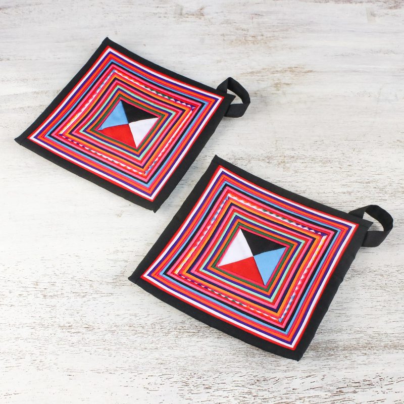 You can find our cotton blend trivets 'Lahu Cooking in Black' (pair) by Thai Tribal Crafts in tableware categories such as Cotton Kitchen Accessories, Polyester Kitchen Accessories and Hot Plates and Trivets Kitchen Accessories. Enjoy exploring these sections for other Novica treasures.