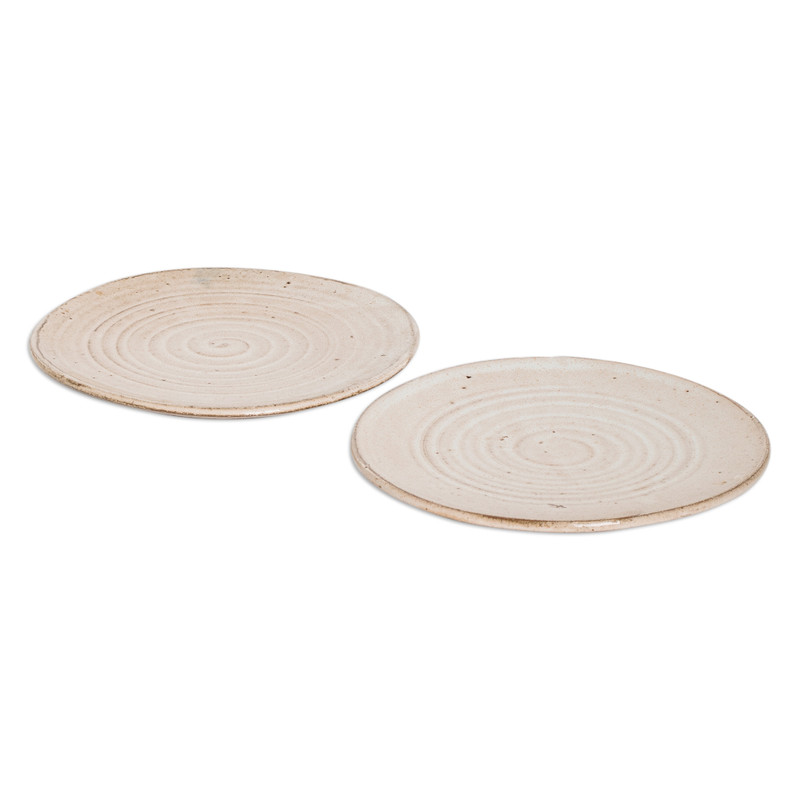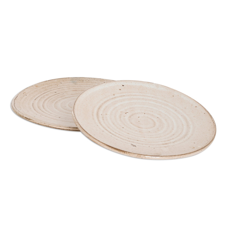 Honduras' Regina Aguilar crafts this graceful pair of dessert plates, working with three different types of local clay and masterful talent. These spiral-motif pieces feature a warm beige glaze that allows subtle glimpses of the natural clay color underneath, creating a dapper aura ideal for any table decor theme.
