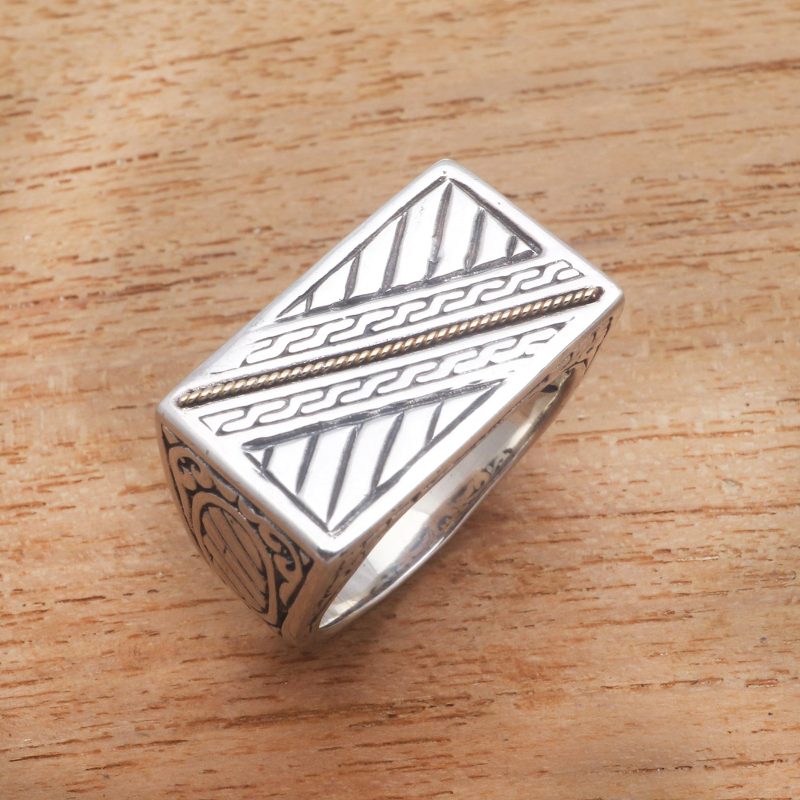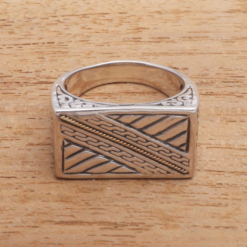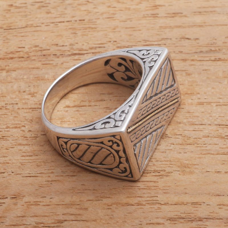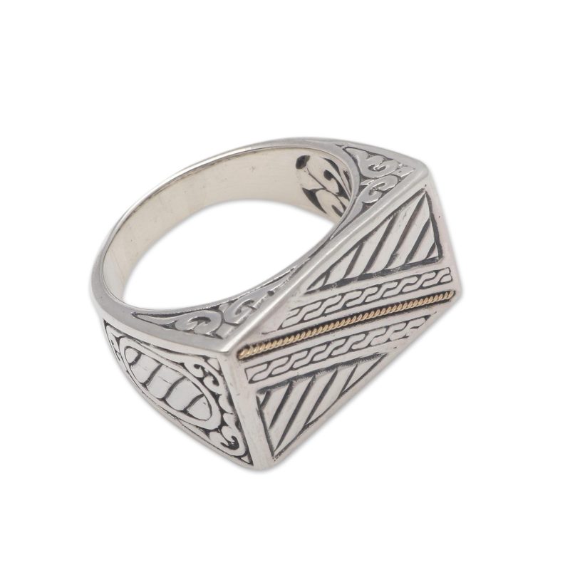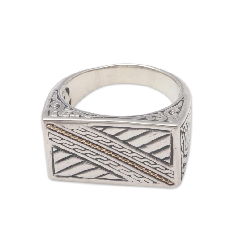 You can find our gold accented sterling silver signet ring 'Divine Bridge' by Kadek Hendra in jewelry categories such as No Stone Rings, Gold Rings, Gold Accent Rings, Silver Rings and Sterling Silver Rings. Enjoy exploring these sections for other Novica treasures.