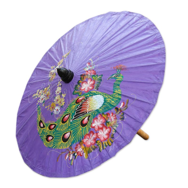 You can find our paper parasol 'Sunny Peacock in Violet' by Nikom in decor accessories categories such as Animal Themed Home Accents, Floral Home Accents, East meets West Home Accents, Hand Painted Home Accents and Paper Home Accents. Enjoy exploring these sections for other Novica treasures.