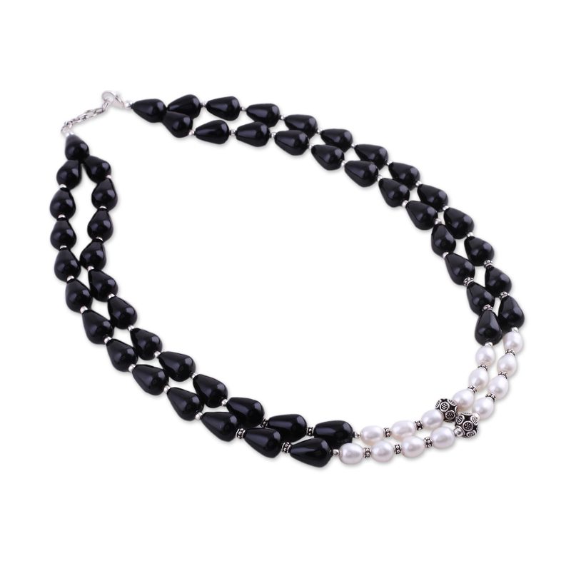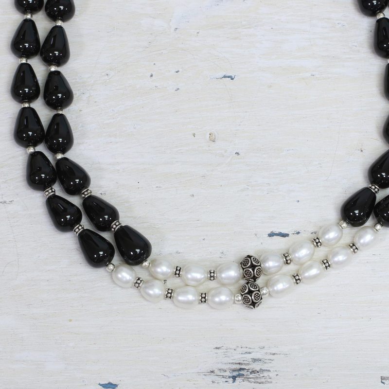 Backed by our 100% Happiness GuaranteeLike moonlight in the darkest night, pearls illuminate a necklace of black onyx. Narayannii's design links two lavish strands in a scintillating necklace set off by sterling silver.