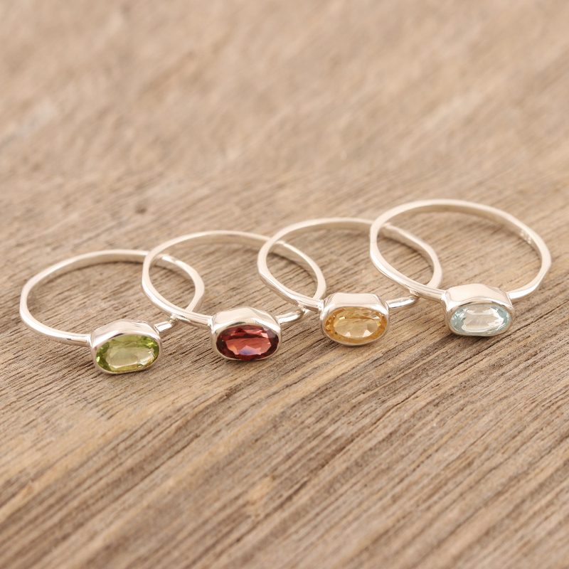 You can find our gemstone single stone rings 'Four Elements' (set of 4) by Bhavya Jain in jewelry categories such as Gemstone Rings, Birthstone Rings, Blue Topaz Rings, Citrine Rings and Garnet Rings. Enjoy exploring these sections for other Novica treasures.