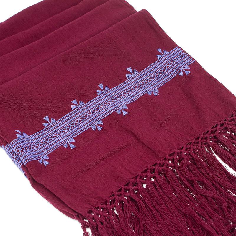 You can find our embroidered cotton shawl 'Empress's Periwinkle Spirit' by Petrona Patishtan in accessories categories such as Hand Woven Shawls and Cotton Shawls. Enjoy exploring these sections for other Novica treasures.