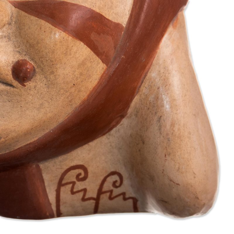Delivery EstimateBy Walter Jose Acosta, this huaco, or terracotta vessel is a realistic portrait of a man from Peru's pre-Inca Moche culture. Archaeologists believe these "head portraits" were crafted for ceremonial purposes to guarantee a life after death. They have been found in tombs, and may be a way of identifying the dead as a member of Moche society. Crafted by hand, the vessel is meticulously painted by hand in russet brown on beige.