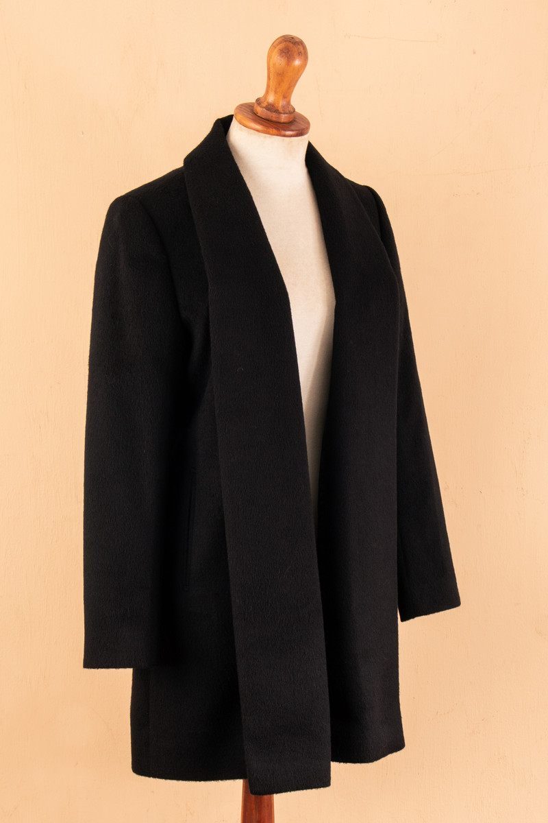 Artisan Tomas Sota loves sharing his alpaca designs because he feels that it is like sharing a piece of his Peruvian homeland. This beautiful black coat is crafted from a baby alpaca, the finest, softest fleece from the season's first shearing, and wool blend. The alpaca and wool blend will keep you cozy and warm, while the open front design makes for easy on-and-off when you are on the go. The black satiny lining is made of a rayon and polyester blend.