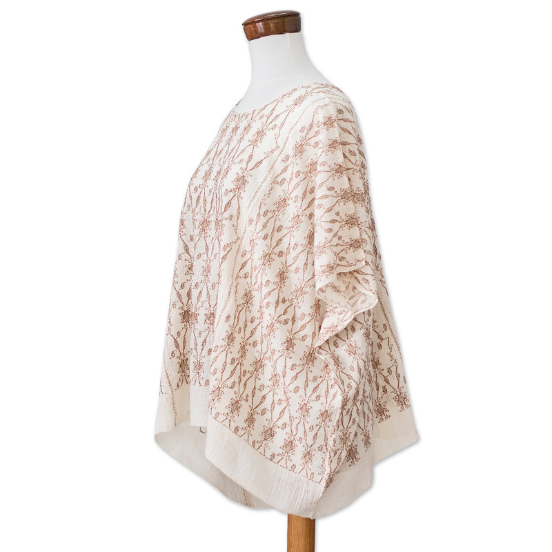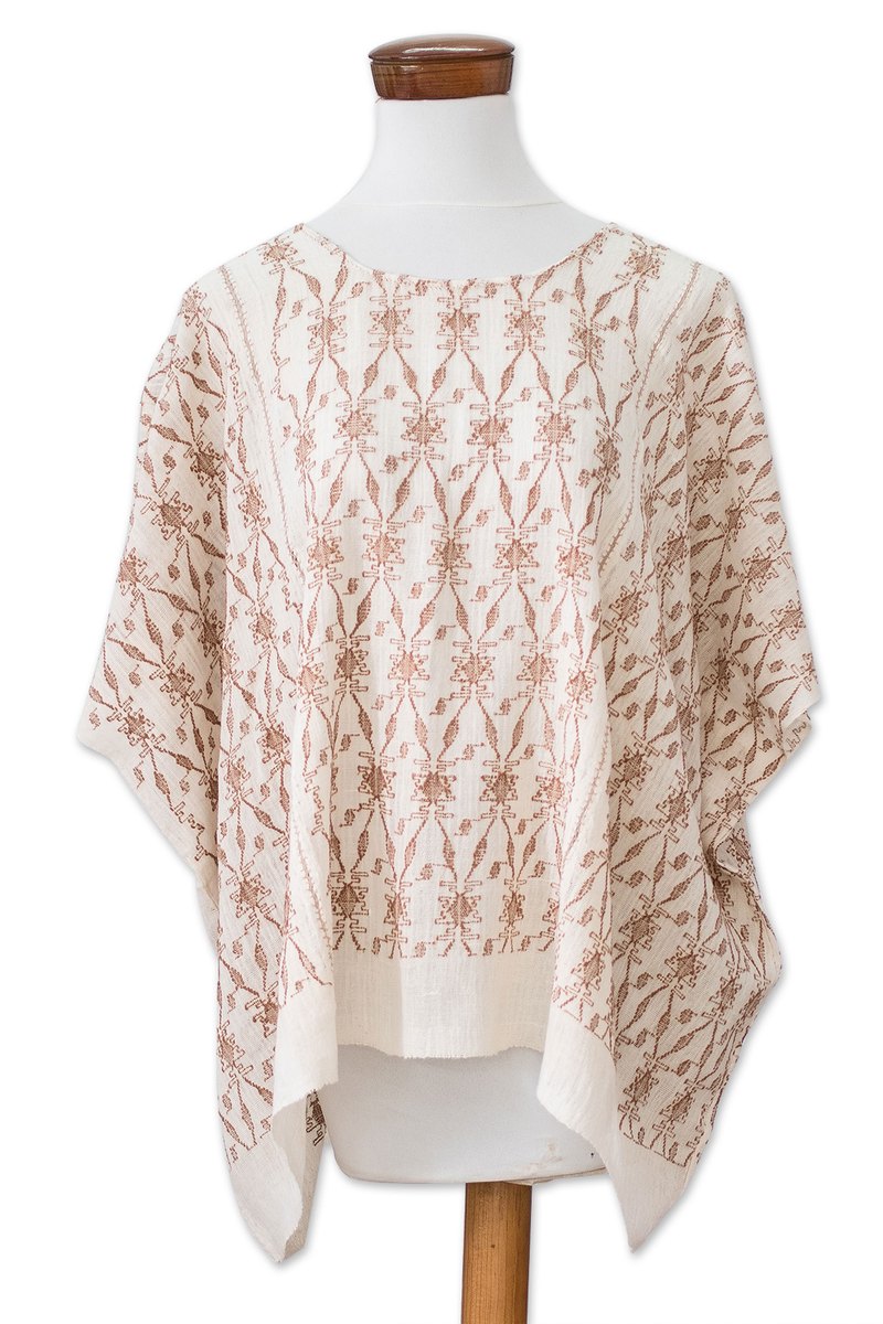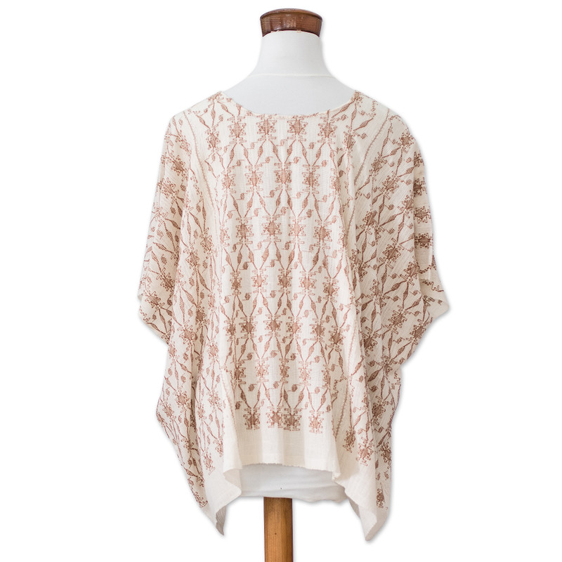Delivery EstimateThe Pic'bil weaving technique, passed down from generation to generation, decorates this stunning garment with Guatemala's traditional elegance. The Ixbalam Ke Women Weavers show the world their innate talent through this lovely cotton caftan top, whose geometric details made in ginger and ivory hues honor the region's breathtaking landscapes.