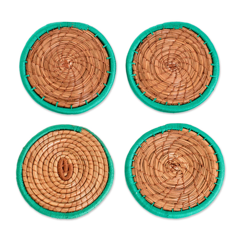 You can find our pine needle coasters 'Latin Toast in Green' (set of 4) by Jessica and Lorena in tableware categories such as Hand Woven Barware, Polyester Barware, Pine Needles Barware and Coasters Barware. Enjoy exploring these sections for other Novica treasures.