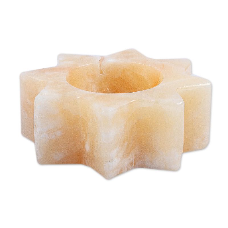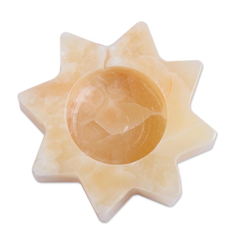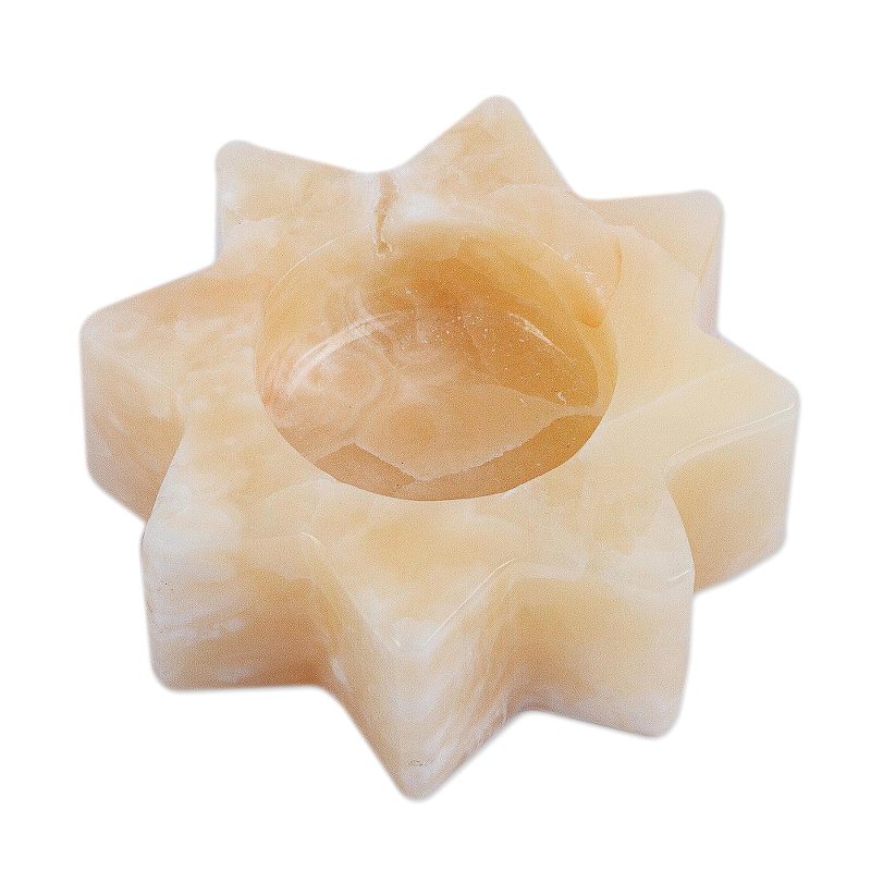 Carved in the shape of a star, polished pineapple onyx cradles a tealight. Sierra Family artisans showcase the extraordinary beauty of the natural stone. The popular girl's name Citlalli means "star" in Nahuatl, the language of the Aztecs.
