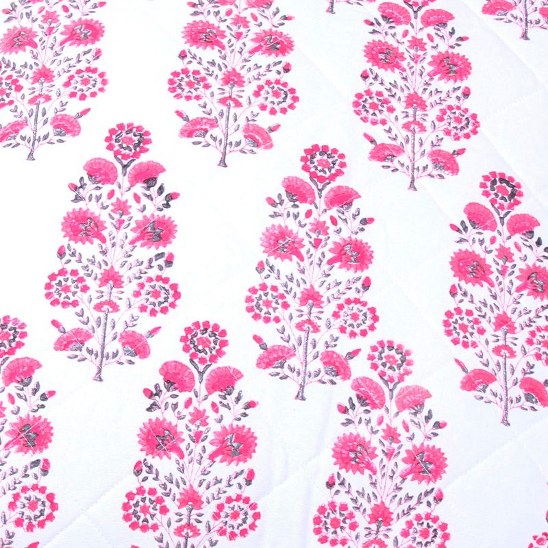 Delivery EstimateEmulating the famed styles of the Mughal empire gardens, Indian designer Navya Khanna creates a gorgeous pair of cushion covers for your seating area. Pink and green floral motifs grace the fronts of the white cotton cases via a hand block print method, while the backs remain solid. A tie closure allows you to insert the cushions. Navya Khanna creates a floral collection of home decor inspired by the Taj Mahal, Her theme is "The Pink Garden."