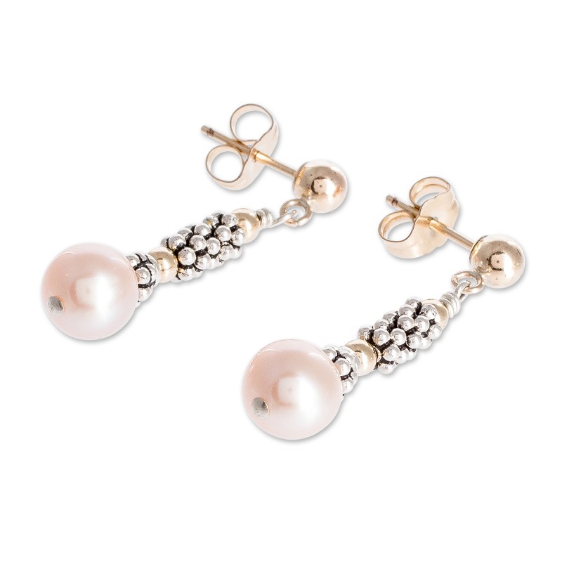 Backed by our 100% Happiness GuaranteePolished 14k gold-filled posts suspend these gleaming dangle earrings from Miriam Bruten in Costa Rica. The earrings are crafted from sterling silver and natural pink cultured pearls. Additional 14k gold-filled beads provide attractive contrast.