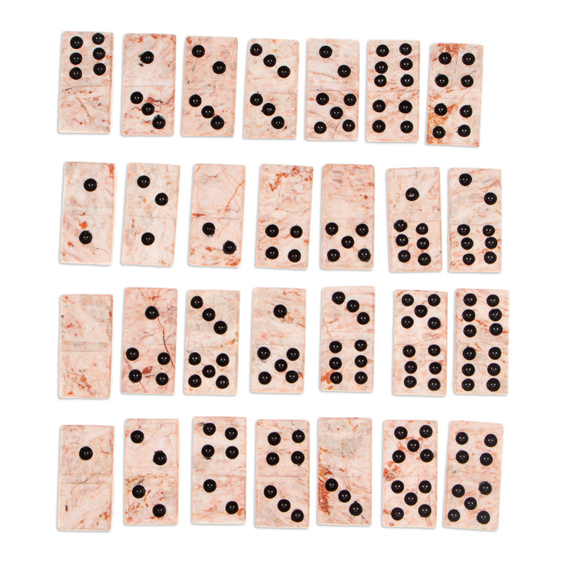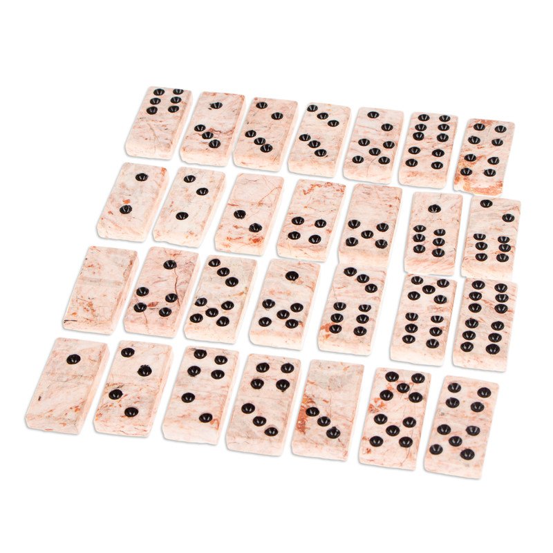 Backed by our 100% Happiness GuaranteeThe game that blends chance and skill in exciting ways, dominoes make a fun and decorative addition to your home with this set from Mexico. The talented artisans of the Sierra Family work with natural pink marble to create this set. Crafted by hand, each piece arrives within a complementary storage box shaped like a large domino.