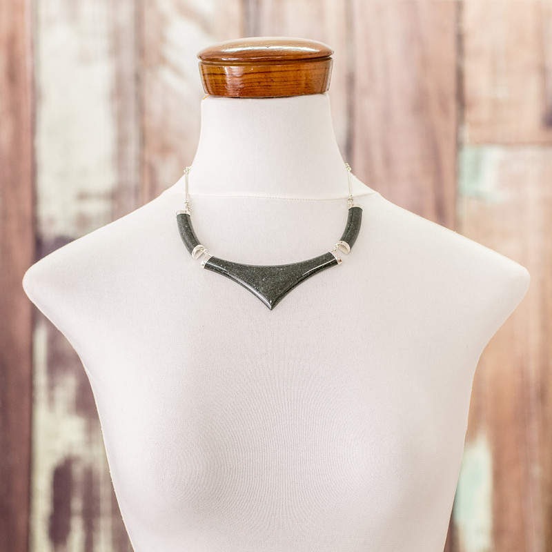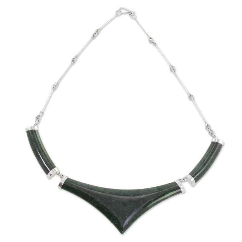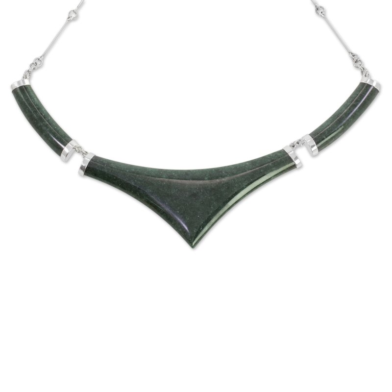 Delivery EstimateAn impressive, pointed stone of dark green jade is flanked by two smaller stones. This striking statement necklace from Guatemala features a design by Zandra Lorena Sajbin, who draws inspiration from traditional Mayan jewelry.