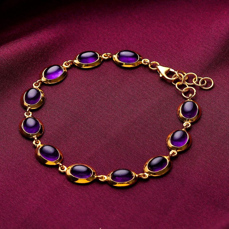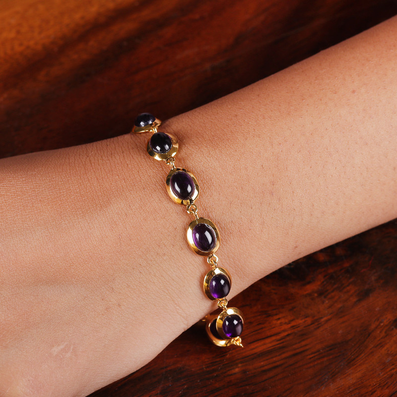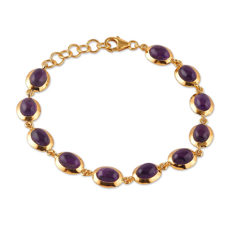 Backed by our 100% Happiness GuaranteeCaptivating purple hues unite with the splendor of an 18k gold-plated link bracelet by designer Neetu Barathi of India. Stunning and mysterious, this gorgeous creation honors the beauty of amethyst through oval pieces—enriched by a high polish finish.