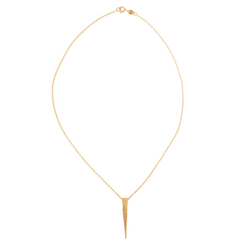 Geometric textures exude majesty around a creation that will transform your style into a modern, bold fashion statement. Showcasing 18k gold-plated sterling silver, Marina Guzman's necklace from Peru is crafted with advanced techniques by master artisans, allowing for a minimalist pendant with a regal finish. The accessory also comes polished to enhance the design's avant-garde aura.