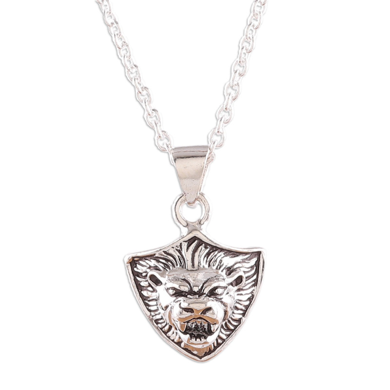 Backed by our 100% Happiness GuaranteeIndian designer Ajay Patil spreads a sentiment of courage, fearlessness and magnificence with this sterling silver necklace accented by the majestic image of a lion. The piece, made with advanced silversmithing techniques, features the creature in a dapper shield-shaped pendant that combines polished and oxidized finishes.