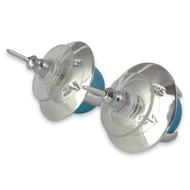 Backed by our 100% Happiness GuaranteeConcave circles of polished Taxco silver embrace cool blue gemstones. Crafted by hand, these sterling silver earrings by Guillermo Arregui feature chalcedony gems.