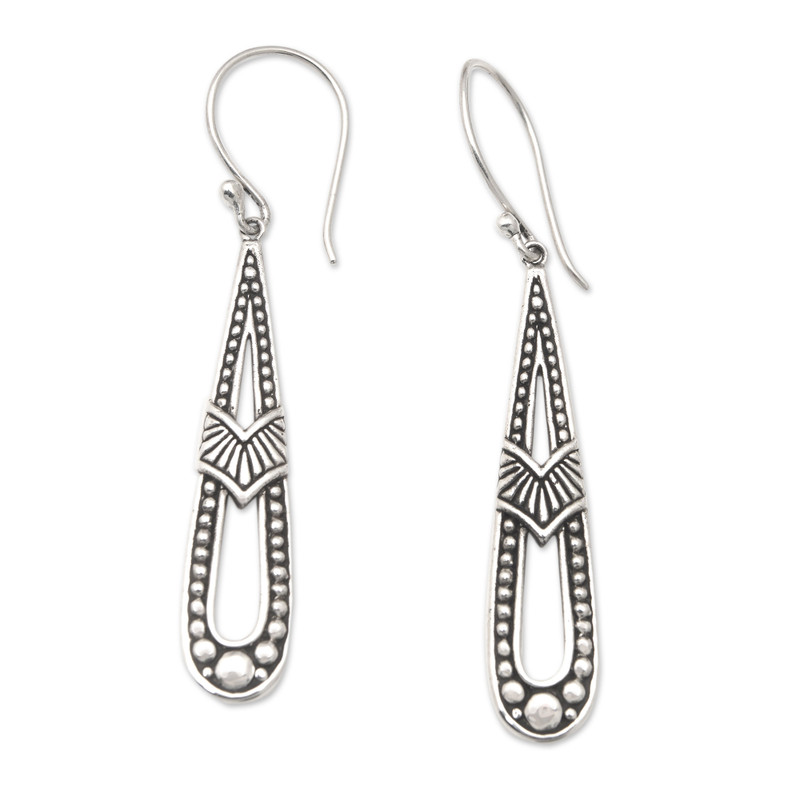 You can find our sterling silver dangle earrings 'Art Deco' by Arta Pradana in jewelry categories such as Balinese Traditional Silver Earrings, Traditional Earrings, No Stone Earrings, Silver Earrings and Sterling Silver Earrings. Enjoy exploring these sections for other Novica treasures.