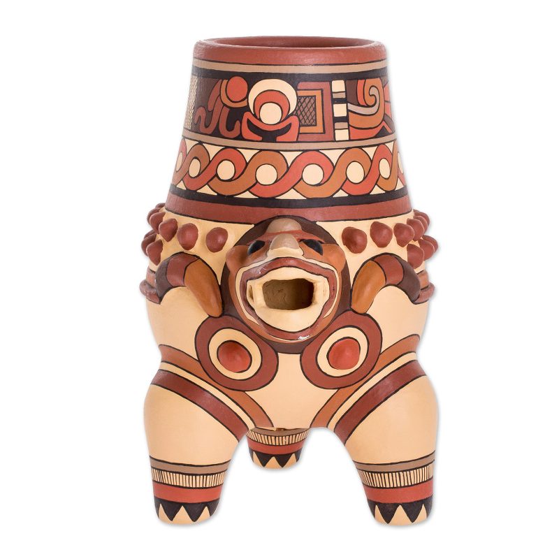 Delivery EstimateWalking on three legs, an ancient serpent coils around the neck of this ceramic vessel. Interlaced spirals crown the mysterious creature with its long fangs and dark, intelligent eyes. Arlen Estrada finds endless fascination in Nicaragua's pre-Historic past. She conveys years of research in her ceramics, which masterfully reinterpret ancestral motifs, colors and legends.