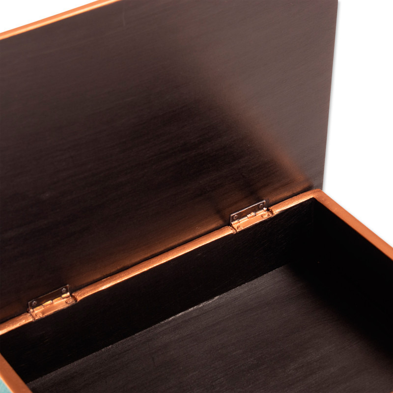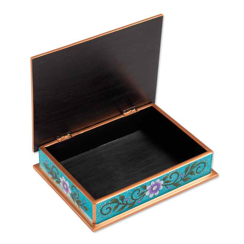 Backed by our 100% Happiness GuaranteeIn hues of violet, blissful margarita flowers are hand-painted onto the reverse sides of glass panels, decorating this blue decorative box from Peru. Felipe Giron creates this box in the style of reverse-painted glass, crafted from wood and given a gold painted trim.