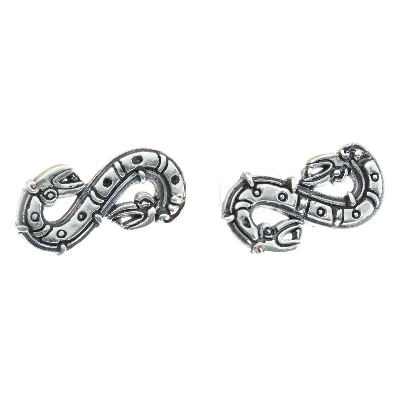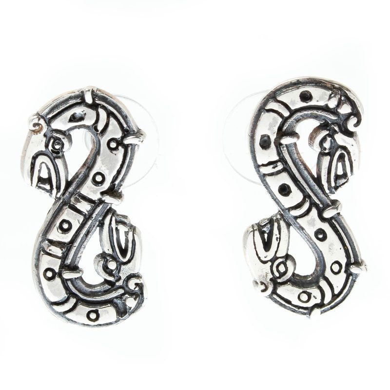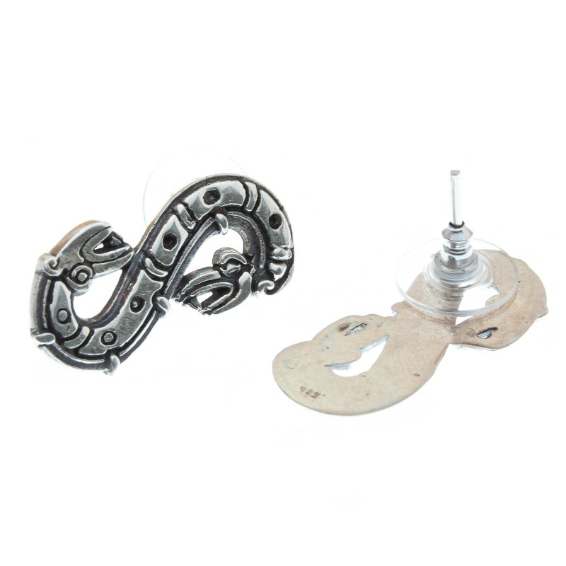 Few images from Mexico's ancient past have remained in the collective imagination like that of Quetzalcoatl, the feathered serpent deity, from whom Mesoamerican peoples claim descent. This interpretation by Rosa Rojo is done in sterling silver, depicting a double-headed snake and alluding to the feathers in a highly-stylized fashion.