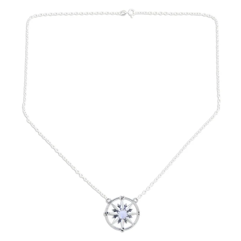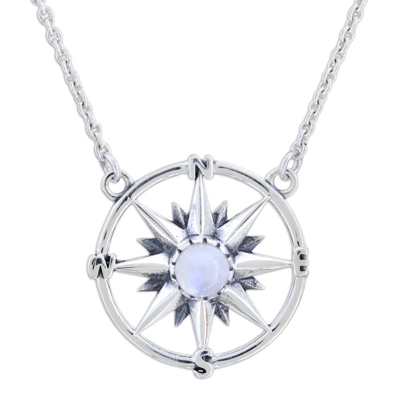 Backed by our 100% Happiness GuaranteeLet this mystical compass from India's Shivani Choudhary be your guiding light in dark times. A round rainbow moonstone centers the compass, which is crafted from polished sterling silver. The pendant hangs from a sterling silver rolo chain that fastens with a lobster claw clasp.