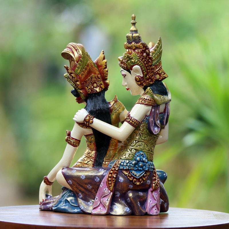 Backed by our 100% Happiness GuaranteeBalinese artisan Nyoman Indrawati Subrata of the Subrata Family handcrafts this suar wood sculpture depicting Rama and Sita. They are the protagonists of the Hindu epic poem, The Ramayana, where the king Rama questions his wife Sita's fidelity. The image is sculpted and hand painted with exquisite details, including the ornate costume and headdresses of the king and queen. The artisan carries on the extraordinary art work of her late father, Nyoman Subrata.