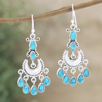 The Indian region teams with NOVICA to present a graceful example of its traditional jewelry arts. Alok Jain and Bhavya Jain unite their designs to create this exquisite curated gift set, which includes majestic chandelier earrings, sophisticated toe rings and a charming floral pendant necklace, all featuring advanced silversmithing and precious reconstituted and composite turquoise jewels exuding an ethereal aura.