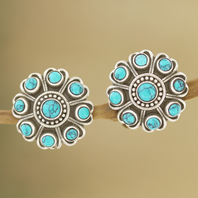 India's Alok Jain brings us a creation full of mysticism. These sterling silver button earrings feature reconstituted turquoise stones that enhance the floral motifs of the accessory, making an item full of magic and charm.