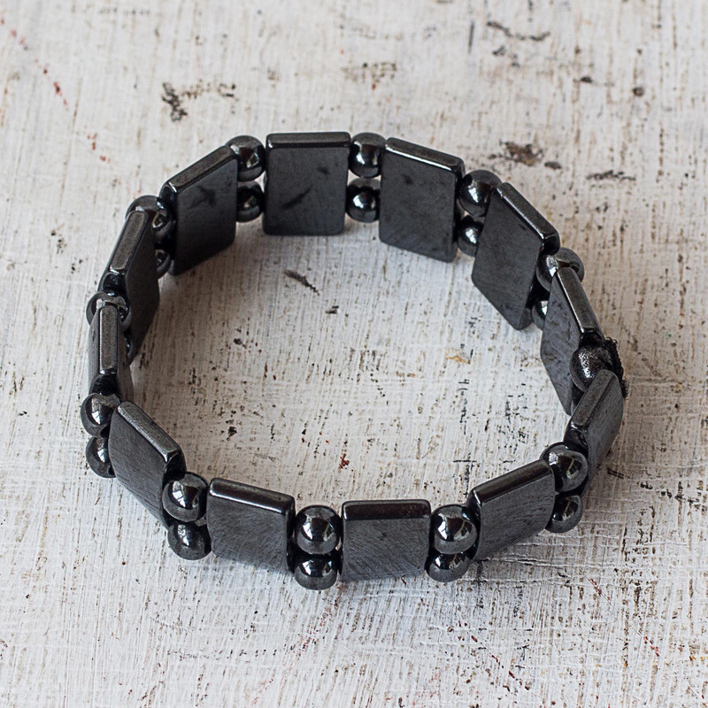 You can find our hematite beaded stretch bracelet 'Shimmer and Sheen' by Tina Quaye in jewelry categories such as Geometric Bracelets, Hematite Bracelets, Bead Bracelets, Stretch Bracelets and Beaded Bracelets. Enjoy exploring these sections for other Novica treasures.